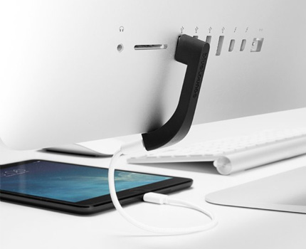 Jimi från Bluelounge gör att du slipper sträcka dig bakom skärmen och pilla i USB-kontakten! Jimi är en J-formad förlängning som serverar dig uttaget på framsidan av skärmen i stället, bekvämt och enkelt!