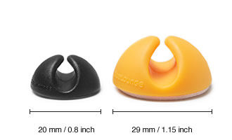 Förutom att förhindra sladdar från att falla av ett skrivbord, kan de användas på möbler eller på väggar för att hålla reda på besvärliga sladdar.