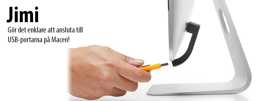 Jimi från Bluelounge gör att du slipper sträcka dig bakom skärmen och pilla i USB-kontakten! Jimi är en J-formad förlängning som serverar dig uttaget på framsidan av skärmen i stället, bekvämt och enkelt!
