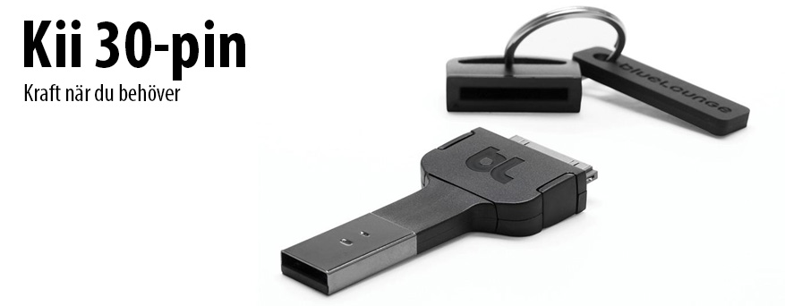 Kii är en liten och kompakt USB-till-Apple30-pin adapter som du kan ha ex vis på nyckelknippan så att du alltid har den med dig. Den tar minimalt med plats och gör att du enkelt kan ladda och synka dina enheter utan att behöva ta med en laddare eller andra extra tillbehör.